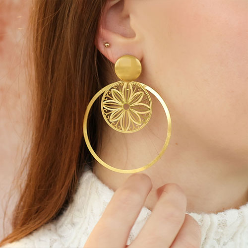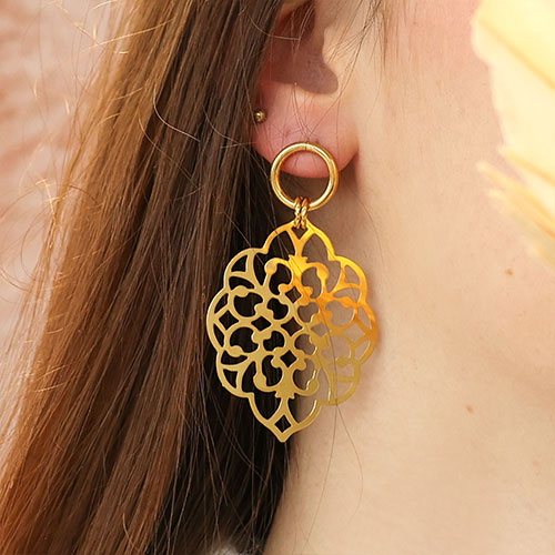 Diese großen Anhänger und Zwischenstücke aus Edelstahl sind ideal, um trendige Statement-Ohrringe im Boho-Look zu gestalten. Als Basis können Sie verschiedene Ohrringe wie z. B. Ohrringe aus Edelstahl, Ohrstecker aus Edelstahl und Ohrringe aus Kristallglas mit einer Öse aus unserem Sortiment verwenden. Mit Biegeringe hängen Sie verschiedene Anhänger und Zwischenstücke an die Ohrringe und nicht vergessen: je größer, desto besser!