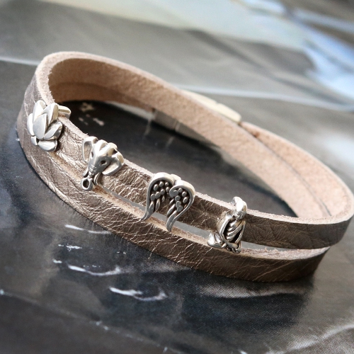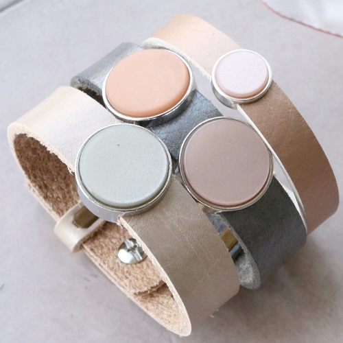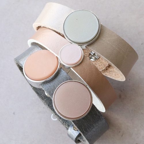 Sind Sie schon bereit für die Feiertage? Mit diesen Armbändern sind Sie das sicher! Wir sind ganz verliebt in dieses Metallic Leder und können einfach nicht genug davon bekommen. Die Armbänder sind super um so zu tragen, aber auch sehr schön mit unseren Cabochons. Nehmen Sie z.B. Holz Cabochons mit einer speziellen Beschichtung. Die Holz Cabochons sind schlicht und die ausgefallenen Muster sind echt super für die Feiertage. Auch unsere Cabochon von Polaris Elements sind perfekt um ein prachtvolles Cuoio Armbänd zu machen. Das Schönste dieser Cuoio Armbänder in Kombination mit einer Schieber Fassung und Cabochon ist, dass Sie immer wieder andere Cabochons nehmen können. Damit können Sie Ihr Armband zu allen verschiedenen Festlichkeiten tragen.