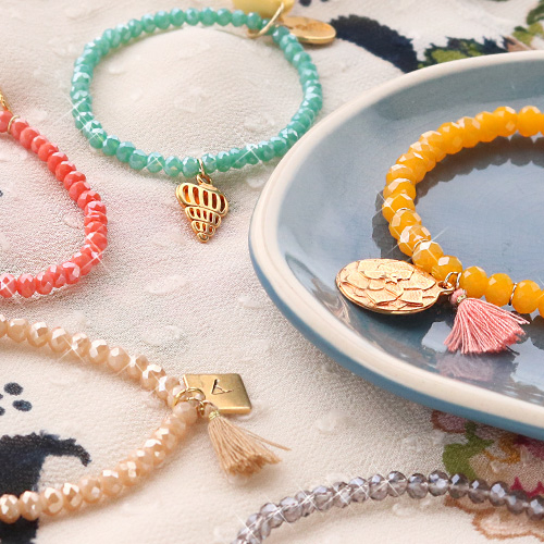 Das ist ganz einfach! Sie können diese Armbänder mit den neuen vorgefertigten Top Facett Armbändern aus unserem Sortiment herstellen. Hängen Sie alle Anhänger mit Biegeringen an die Armbänder und fertig! Machen Sie Armbänder mit nur einem Anhänger oder hängen Sie das gesamte Armband voll mit hübschen Armbändern. Zum Abschluss versehen Sie die Initialen Ihres Shops auf einem ImpressArt Anhänger.