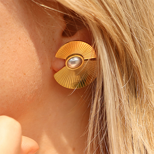 Ohrringe / Ohrstecker aus Stainless Steel - Rostfreiem Stahl Lüfter mit Imitation perlen Gold