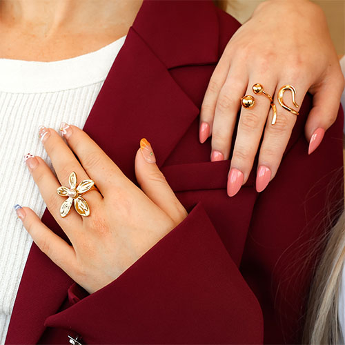 Suchen Sie markante Highlights für Ihr Sortiment? Unsere neuen Edelstahl-Statement-Ringe sind groß, ausdrucksstark und in trendigen Formen wie Blumen, Herzen und mehr erhältlich. Ideal zum Kombinieren mit Ihren eigenen Designs oder als einzelner Eyecatcher im Angebot.