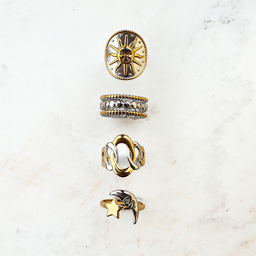 Ringe aus Stainless Steel - Rostfreiem Stahl Stern und Mond Gold-silver