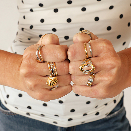 Ringe aus Stainless Steel - Rostfreiem Stahl Muschel Silver-gold