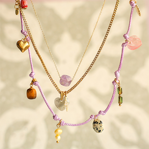 Die Naturstein-Anhängern dieser neuen Serie sind in verschiedenen Formen und angesagten Farben erhältlich. Mit diesen Anhänger lassen sich trendige Ketten für den Layering-Look kreieren. Spannende Effekte erzielen Sie in Kombination mit gewebtem Makramee-Band, farbenfrohen Perlen und verschiedenen Anhängern.
