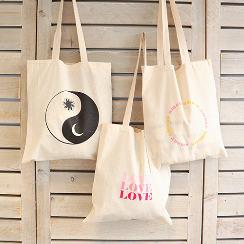 Die Baumwolltaschen und Schmuckkarten aus dieser trendigen Kollektion sind einfach nur praktisch! Die Taschen eignen sich zum Einkaufen und die Karten können vielseitig eingesetzt werden. Denken Sie nur an Ihre kommende Valentins-Kollektion zum Beispiel!