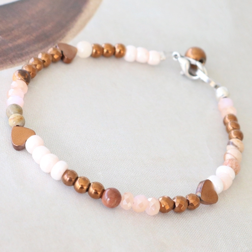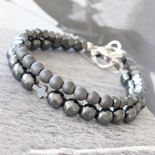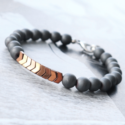 Hematite kralen zijn helemaal hip voor hem en voor haar. Wil jij een hip setje sieraden maken zoals in dit voorbeeld? Voor de heren sieraden kun je de donkere hematite kralen combineren met onderdelen van DQ metaal. Rijg de kralen op metaaldraad en gebruik DQ metalen knijpkraaltjes om van het uiteinde een lus te maken. Hier kun je een ringetje aan het ene uiteinde bevestigen en aan de het andere eind een hip karabijn slot van DQ metaal. Met een knijpkraal verberger maak je het sieraad helemaal compleet. Voor een vrouwelijk sieraad met kralen van hematite kun je meer leuke kleurtjes kralen toevoegen. Combineer het hematite in fijne kraaltjes met de kleinste kraaltjes van Top facet, rocailles en natuursteen. Voeg ook de leukste kraaltjes met figuren van hematite toe zoals het hartje of het sterretje. Door verschillende vormen kleine kraaltjes te combineren ontstaat er mooi geheel met een trendy vormcontrast. Leuk toch?