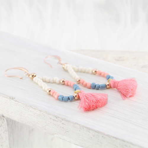 Die Ohrringe sind aus DQ Material gemacht, Sommer Quaste und verschiedene Farben Rocailles. Das Armband was dazu gemacht wurde ist aus Azteke Kordel mit einer Muschel Perle und einem DQ Anhänger. Dadurch wird das Armband noch schöner! Das 3 in 1 Armband ist auch echt eine super Kombination! Die Farben des Armbandes sind neutral aber auch fröhlich. Das kommt durch das Dremz Band und die Fasssung mit einem Swarovski SS39 flatback.