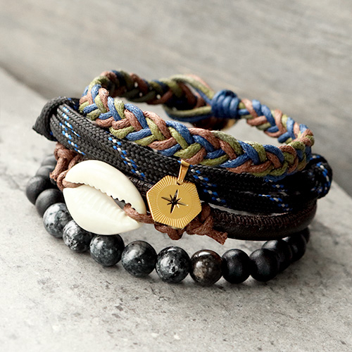 Es ist fast Vatertag, stellen Sie sicher, dass Ihre Schmuck Kollektion für alle Super-Väter gefüllt ist! Machen Sie den Schmuck zum Vatertag mit DQ Leder, Parakordel, Surfkordel und DQ Metall. Verwenden Sie dunkle Töne und kreieren Sie einen coolen Look. Für alle coolen Surf-Väter kann man die Lederarmbänder noch mit Kauri Muscheln verzieren. Ausserdem sind Perlen Armbänder nicht nur für Frauen geeignet, auch Männer gefällt das. Verwenden Sie dann ausgefallene Natursteinperlen für einen rauen Effekt.