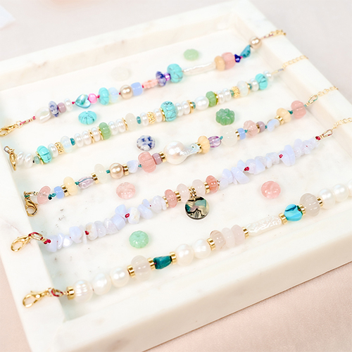 Neue Serie mit bezaubernden Naturstein-Blumenperlen; die ideale Basis für die Kreation angesagter Armbänder! Kombinieren Sie sie geschickt mit unseren stilvollen Süßwasserperlen und anderen Natursteinperlen aus unserer Online-Kollektion. Der Erfolg ist Ihnen garantiert!