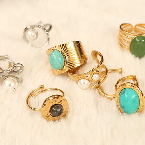 • Ringe aus Stainless Steel - Rostfreiem Stahl mit Imitation von Naturstein Gold-turquoise