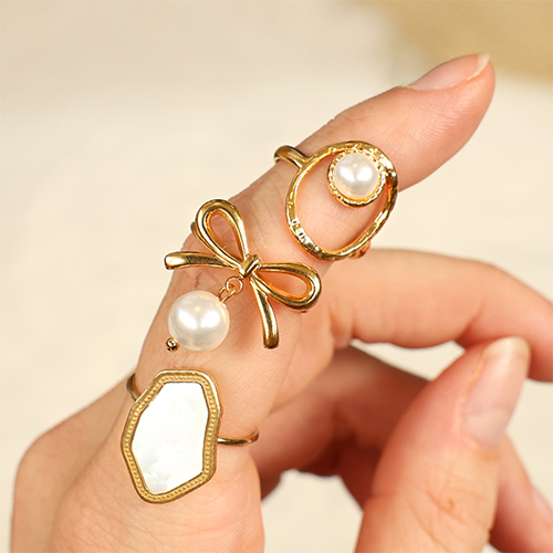 Ringe aus Stainless Steel - Rostfreiem Stahl mit Naturstein Gold-light pink