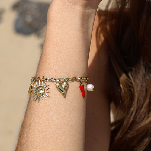 Armbänder aus Stainless Steel - Rostfreiem Stahl mit Anhänger Sommer Gold-red-white