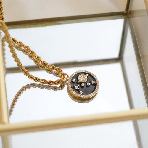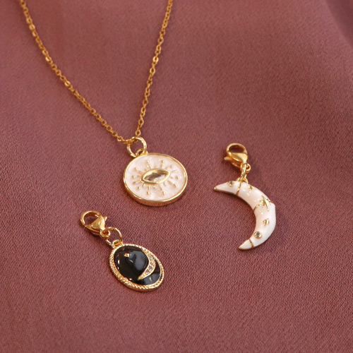Brass TQ Metall Anhänger Mond Enamel Gold-black