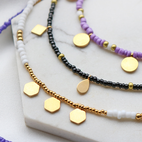 Mit den neuesten Stainless Steel Anhängern können Sie natürlich alle Arten von super schönem Schmuck herstellen. Aber diesmal haben wir uns entschieden, sie in einer Kette aus Rocailles zu kombinieren. Um diese Ketten herzustellen, reihen Sie Rocailles beispielsweise in schönen Sommerfarben auf Metalldraht. Sie können verschiedene Stainless Steel Anhängern zwischen die Rocailles reihen. Auf diese Weise erhalten Sie eine verspielte Kette mit minimalistischen Details. Diese Ketten lassen sich auch perfekt miteinander kombinieren, sodass Sie mehrere gleichzeitig tragen können. Durch Hinzufügen einer Verlängerungskette am Verschluss können Sie die Länge Ihrer Kette jederzeit variieren.