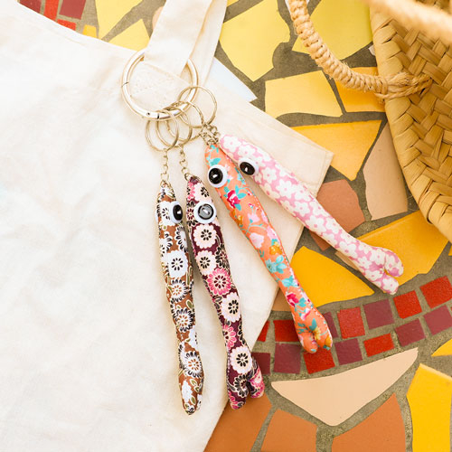 Gesucht: trendige Accessoires? Diese neue Serie bietet, was Sie suchen: lustige Fische mit Knopfaugen in verschiedenen bunten Blumenmustern. Die Fische sind als Schlüsselanhänger gearbeitet und werden an Tasche und Schlüsselbund zum lustigen Blickfang. Nicht zögern und Bestellung gleich sichern.