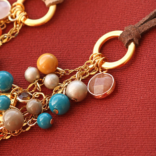 Glasperlen sind natürlich ein echtes Must-Have, denn sie sind so vielseitig und können daher für alles verwendet werden. Wir haben uns jedoch für echten Bohemieschmuck entschieden, nämlich zwei lange Halsketten mit passenden Ohrringen. Die langen Halsketten sind aus Kunstleder und einem Ring DQ gefertigt. Hier hängen Sie mit Hilfe von Jasseron alle möglichen schönen Glasperlen und andere Gegenstände, wie Kristallglas oder Top Facett Perlen. Machen Sie jetzt passende Ohrringe und Sie sind fertig!