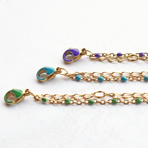 Schmuck aus Top Qualität machen mit einem stilvollen Look und einem kleinen Hauch von Farbe? Dann beginnen Sie mit dem neuesten Jasseron Stainless Steel und Karabiner Verschlüsssen mit farbigen Öldetails. Diese Artikel passen perfekt zusammen und damit können Sie die besten Armbänder und Ketten herstellen. Versuchen Sie auch, den Jasseron mit Öldetails mit einer anderen Variante Jasserons zu kombinieren, um einen spielerischen Effekt zu erzielen. Sie können es kombinieren, indem Sie zwei Schichten in Ihrem Armband oder Ihrer Kette erstellen. Sie befestigen die beiden Ebenen an demselben Verschluss und machen es zu einem Artikel. Als schönes Detail können Sie einen Stainless Steel Anhänger an den Verschluss befestigen oder zum Beispiel mehrere Anhänger mit einem Biegering in die Mitte der Kette hängen.