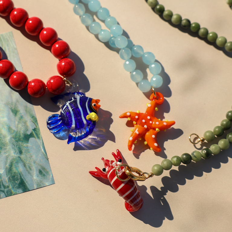Handgefertigt Glas-Anhänger Seestern Orange-white-yellow