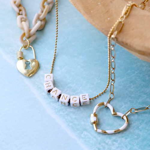 Mit den Zirkonia-Anhängerschlössern können Sie stylischen und coolen Schmuck mit Wow-Faktor kreieren! Die Zirkonia-Schlösser können nämlich auf unterschiedliche Weise in einem Ornament, als Anhänger und als Verbinder verarbeitet werden. Kreieren Sie verschiedene Halsketten, indem Sie die Zirkonia-Vorhängeschlösser an den beliebten Acrylketten oder dem Jasseron befestigen. Verleihen Sie dem Artikel einen extra trendigen Look, indem Sie verschiedene Anhänger, wie z. B. die Initialen-Anhänger, auf das Schloss fädeln. Für einen eleganten Look kombinieren Sie die Schlösser mit Süßwasserperlen. Sie können sogar wählen, die Perlen mit Zirkonia-Messing-Elementen zu personalisieren. Dadurch kommen die schönen Zirkoniasteine öfters in den Schmuck zurück. Möchten Sie ein Schmuckset entwerfen? Dann denken Sie zum Beispiel an eine Kette, die Sie mit Würfelbuchstaben-Perlen herstellen können. Legen Sie los und kreieren Sie wunderschönen Statement-Schmuck!