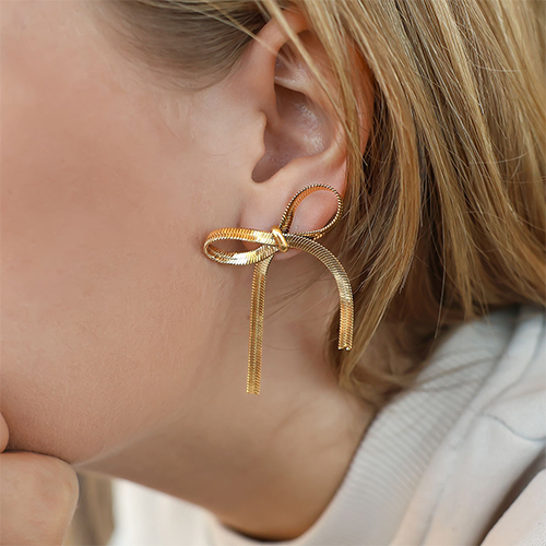 Ohrringe aus Stainless Steel - Rostfreiem Stahl Ohrstecker Schleife Gold