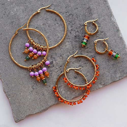 Diese Creolen aus Edelstahl sind die perfekte Basis, um eine eigene Ohrring-Kollektio zu gestalten! Verwenden Sie verschiedene Perlen, wie z. B. Natursteinperlen, Glasperlen oder Preciosa-Perlen, die Sie mit Nietstiften und einer Rundzange zu einem Anhänger verarbeiten. Hängen Sie diese an die Creolen oder verwenden Sie Artistic-Wire, um die Perlen an den Creolen zu befestigen. Mit fertigen Anhängern oder Acrylglieder erzielen Sie ebenfalls ein trendiges Ergebnis.