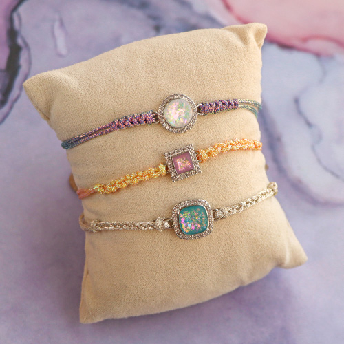 Diese Zwischenstücke können ihre Wirkung am besten neben einfachen Materialien entfalten. Daher verwenden Sie in Ihren Schmuckdesigns Makramee-Bänder oder Jasseron-Kette, um schmale Armbänder und Fußkettchen zu gestalten. Sie können auch verschiedenfarbige, facettierte Perlen auf einen elastische Schmuckfaden aufziehen, um schöne Ringe herzustellen, in die Sie die Zwischenstücke einarbeiten. Präsentieren Sie Ihren Schmuck auf Schmuckkarten für eine besonders persönliche Note!