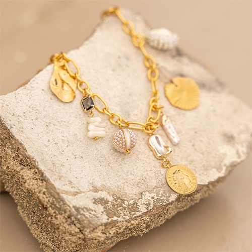 Lassen Sie sich dieses Frühjahr zu Sea Life-Schmuck und Schmuck in natürlichen Erdtönen inspirieren. Kreieren Sie auffallende asymmetrisch lange Ohrringe mit Jasseron, Perlen, Muscheln und Anhängern aus Kristallglas und Bambus oder gestalten Sie auffällige Statement-Gliederketten mit überzeugenden Anhängern. Passend dazu können Sie Armbänder mit Perlmutt-Anhängern, Süßwasserperlen und Edelstahl-Sea-Life-Anhängern designen. Vollenden Sie Ihre überzeugende Frühjahrskollektion mit Armreifen und Statement-Ringe!