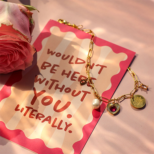 Verwöhnen Sie Ihre Kundschaft zum Muttertag mit wunderschönen Schmuckstücken, die mit exklusiv entworfenen Artikeln und erstklassigen Materialien gefertigt sind. Entdecken Sie einzigartige Ketten mit Süßwasserperlen und zauberhaften Anhängern, fertige Armbänder und hübsche Ringe mit Buchstaben oder Herzen. Wählen Sie dazu stilvolles Verpackungsmaterial und komplettieren Sie Ihre Kollektion mit individuell gestalteten Schmuckkarten für eine persönliche Note!