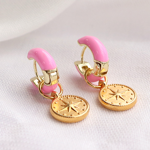 Trendy Ohrringe Creolen Enamel 15mm Pink-gold