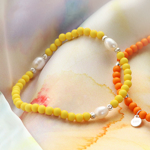 Nur noch ein paar Tage, dann ist der Sommer um uns herum. Mit der farbenfrohen Kollektion von Acrylperlen können Sie das gemütliche Gefühl der Sommermärkte in Ihr Geschäft bringen. Diese farbenfrohen Artikel können leicht mit verschiedenen Perlen und Materialien kombiniert werden. So können Sie die schönsten Schmuckstücke in verschiedenen Stilen erstellen. Wir haben uns entschieden, ein paar fröhliche Armbänder mit Silberperlen und Anhängern zu machen. Die Herstellung der Armbänder ist einfach. Sie fädeln einfach alle Perlen auf ein Gummiband und machen dann einen Doppelknoten und tupfen etwas Kleber auf. Durch die Kombination der Acrylperlen mit Süßwasserperlen und Top-Facettenperlen können Sie Ihrem Armband einen stilvollen Look verleihen. Kombinieren Sie verschiedene Größen von Acrylperlen zu einem verspielten und fröhlichen Schmuckstück. Kreieren Sie die lustigsten Farbkombinationen mit diesen coolen Perlen, damit das Sommerfeeling aus Ihrem Schmuck strahlt!