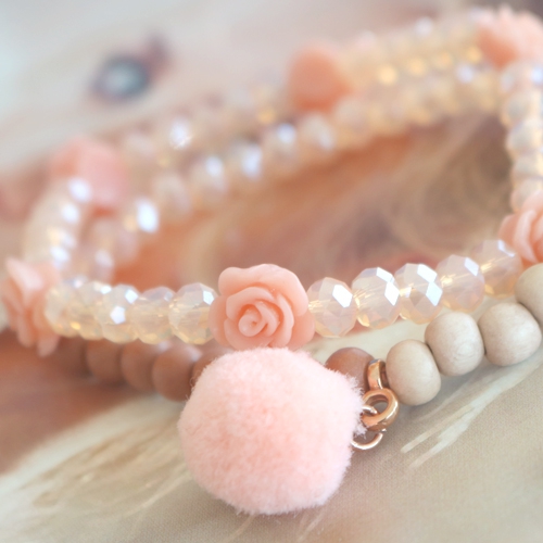 Dieser Sommer Look ist aus den schönsten Perlen in herrlichen “peach”& “coral” Tönen gemacht.