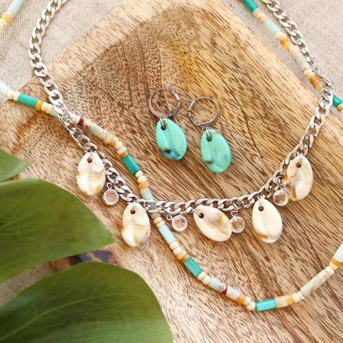 Mit den neuesten Resin Kauri Muscheln braucht man nicht wirklich viel, um super schönen Schmuck herstellen zu können. Für die Herstellung von Ohrringen können Sie Ohrringzubehör verwenden oder trendige Ohrringkreolen wählen. Mit Hilfe eines Biegerings können Sie dann die Muschelperlen und andere schöne Anhänger an den Ohrringen befestigen. Die Möglichkeiten für Ketten sind endlos. Zum Beispiel können Sie schöne Ketten mit Jasseron herstellen und die Resin Kauri Muscheln daran hängen. Mögen Sie einen Strandlook?