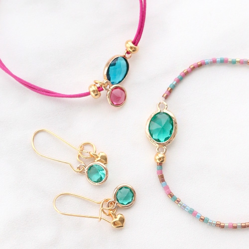 Von welchem Schmuck werden Ihre Kunden glücklich? Dieser Schmuck mit neuen Kristall Glas Anhängern und Zwischenstücken sind für jeden passend. Wir kombinierten das Kristall Glas mit verschiedenen Reihmaterialien wie Macramé und Jasseron. Wir verwendeten auch unsere Miyuki delicas in Trendfarben für einen fröhlichen Touch im Armband. Dazu haben wir passende Ohrringe gemacht mit unseren Ohrringen aus DQ Metall.