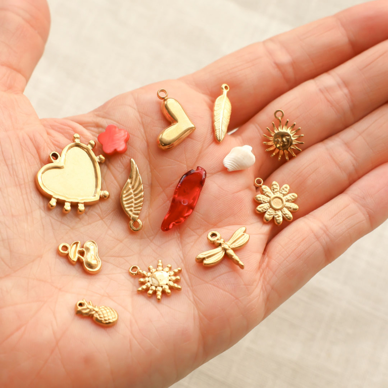 Heute möchten wir Ihnen unsere neue Serie mit Anhängern aus Edelstahl vorstellen. Sie hält Anhänger in verschiedenen, trendigen Designs wie Blumen, Tieren und Herzen für Sie bereit. Diese Serie eignet sich perfekt, um Layer-Ketten zu kreieren oder angesagte Ohrringe zu entwerfen.