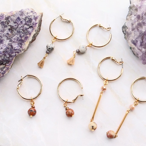 Kaufen Sie unsere Kollektion preislich günstige Naturstein Perlen jetzt und machen den schönsten Schmuck! Wir haben verschiedene Armbänder und Ohrringe gemacht mit diesen prachtvollen Perlen und hier lesen Sie, was Sie dafür benötigen…Kombinieren Sie Naturstein Perlen mit DQ Metall Ohrringen und Zwischenstücken für einen überraschenden Kontrast. Verwenden Sie auch DQ Metall Perlen um Armbänder zu machen und wechseln die Naturstein Perlen ab mit Acryl Perlen und Facett Perlen. Zum Abschluss können Sie Ihren Schmuck noch dekorieren mit zum Beispiel Quasten für einen verspielten Effekt. Viel Erfolg!