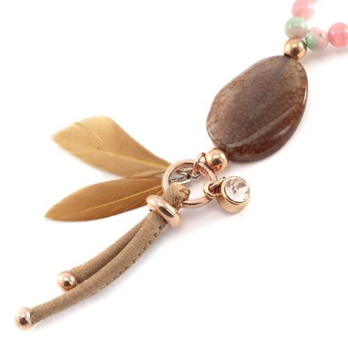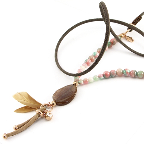 Diese prachtvollen Herbsttöne, das gesteppte Leder und die super Halbedelstein Naturstein Perlen…sie machen diesen Schmuck zu einem prachtvollen Gesamtstück. Verwenden Sie fröhliche Farben z.B. rosa und türkis mit natürlichen Tönen für die perfekte Balance. Der Trend des Herbstes hat viele Elemente aus Leder und anderen natürlichen Produkten. Das Imitat Leder gesteppt müssen Sie haben für diese Saison. Go Nature!